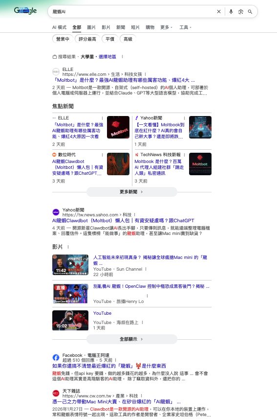當「龍蝦」開始在 AI 社群中被反覆引用為工具或梗時,Google 就會在某些情境下,把它解讀成 AI 相關搜尋意圖的一部分。